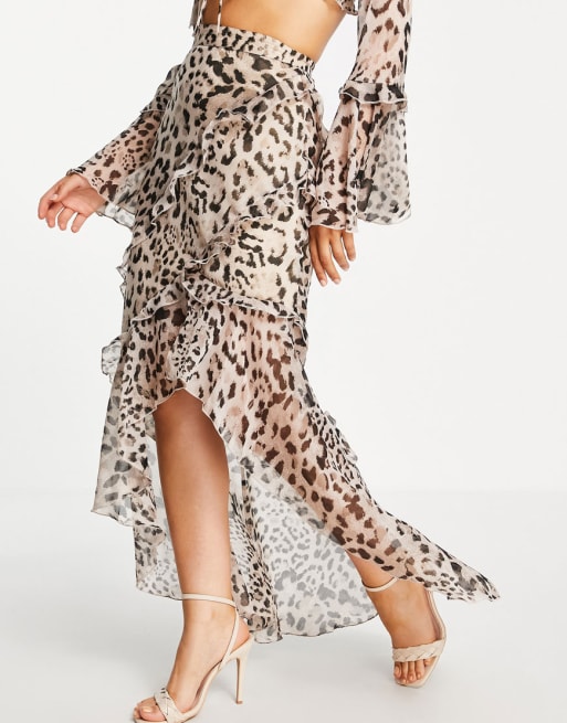 ASOS DESIGN ruffle detail top & midi skirt set in mixed animal print
