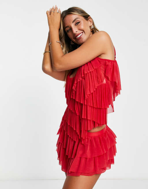 ASOS DESIGN ruffle shorts in red