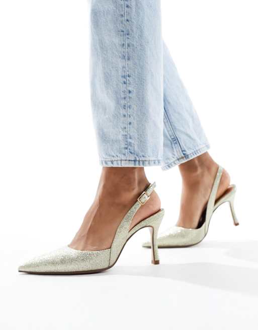 ASOS DESIGN Samber 2 slingback stiletto heels in gold glitter