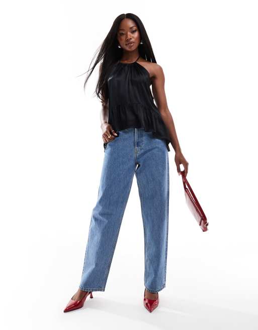 ASOS DESIGN satin high neck halter top in black