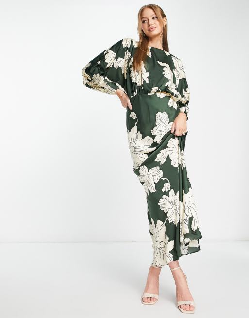 ASOS DESIGN satin maxi dress with batwing sleeve in large stencil floral