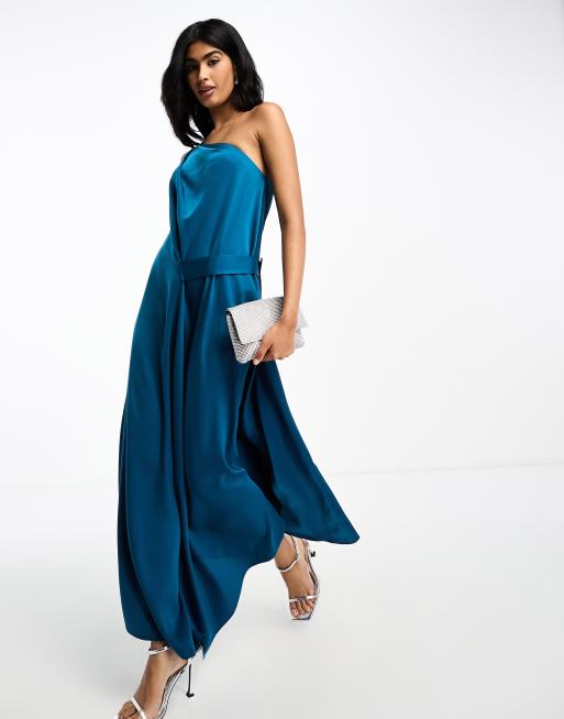 ASOS DESIGN satin one shoulder midi dress with wrap waist detail in teal