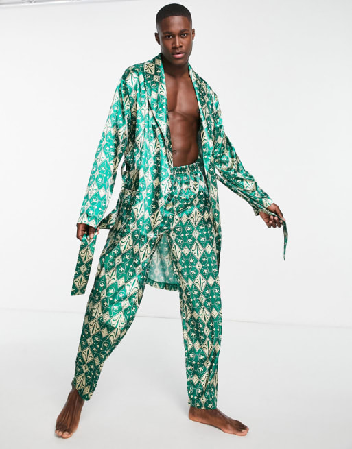 ASOS DESIGN satin robe and pajama bottoms with print