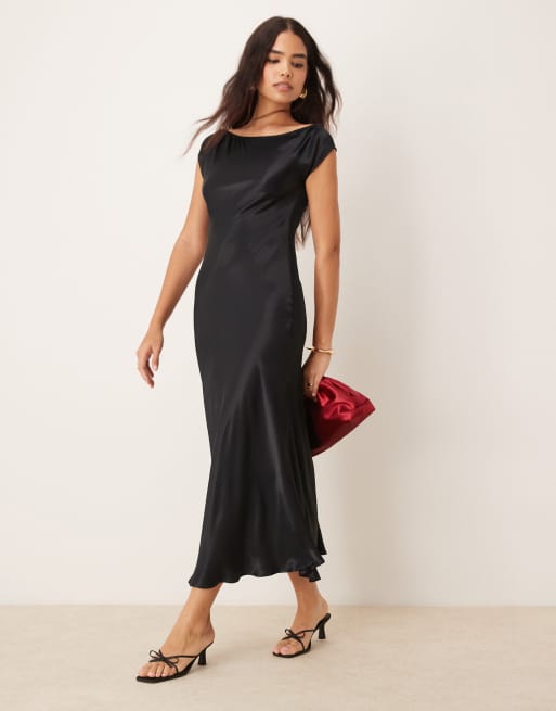 ASOS DESIGN satin scoop neck bias cut maxi dress in black