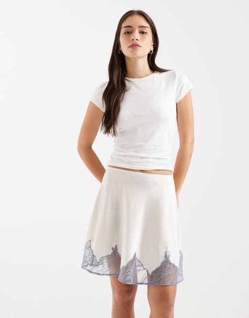 ASOS DESIGN scalloped lace hem satin mini skirt - part of a set