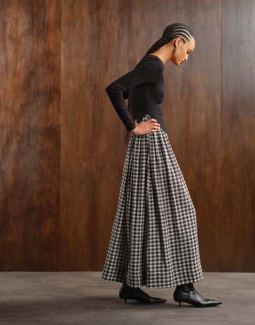 ASOS DESIGN scoop neck long sleeve hybrid maxi dress in mono plaid