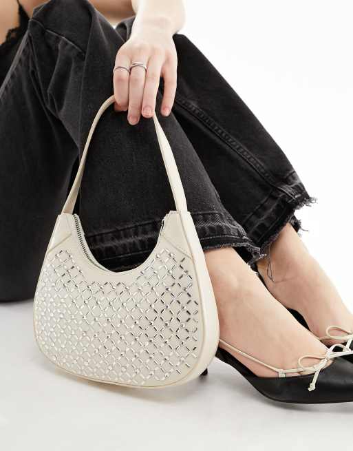 ASOS DESIGN scoop shoulder bag with hotfix diamante in cream