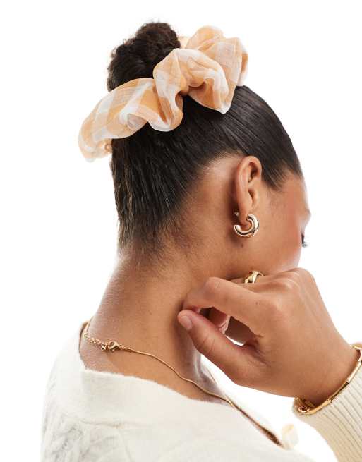 ASOS DESIGN scrunchie hairband with oversized gingham organza design in multi