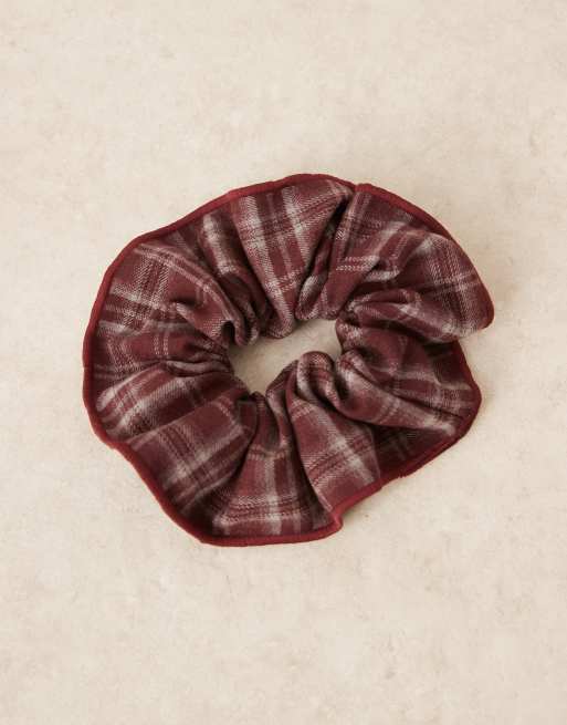 ASOS DESIGN scrunchie in red tartan plaid with stitching edge detail