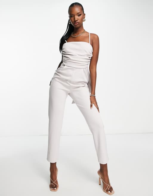 ASOS DESIGN scuba strappy bow back peg leg jumpsuit in silver