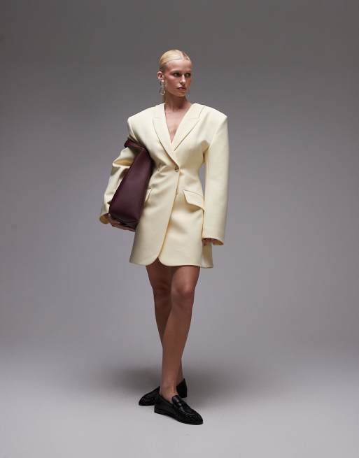 ASOS DESIGN sculpted blazer dress in buttermilk