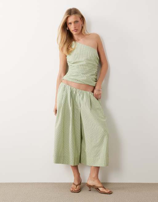 ASOS DESIGN seersucker pull on culottes in green stripe