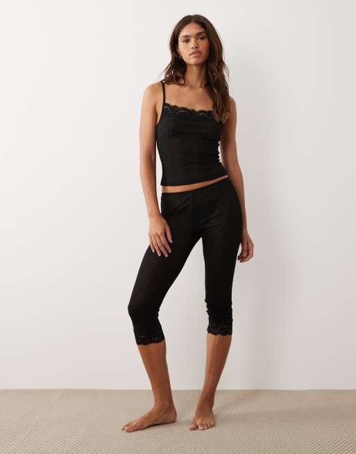 ASOS DESIGN semi sheer capri pajama pants with lace trim in black