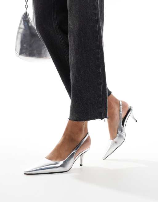 ASOS DESIGN Shake slingback kitten heels in silver