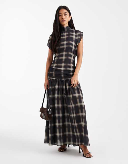 ASOS DESIGN sheer scarf draped maxi dress in plaid