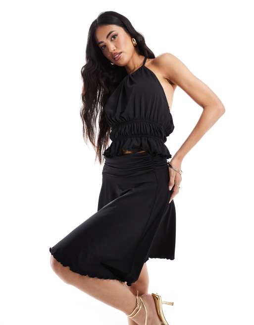 ASOS DESIGN shirred halter top and asymmetric skirt set in black