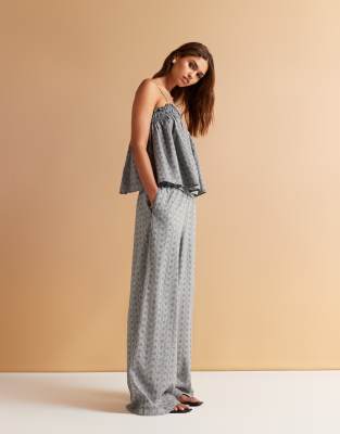 ASOS DESIGN shirred waist wide leg broderie pants in washed gray - part of a set