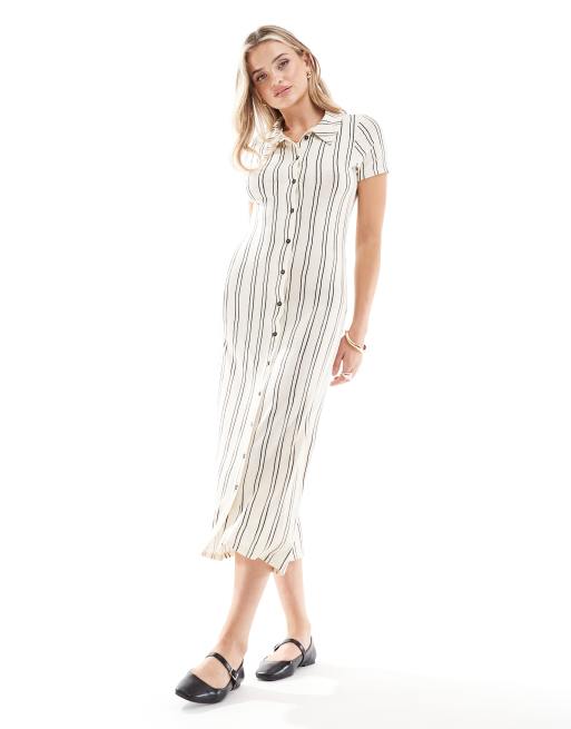 ASOS DESIGN short sleeve button through midi dress in white stripe