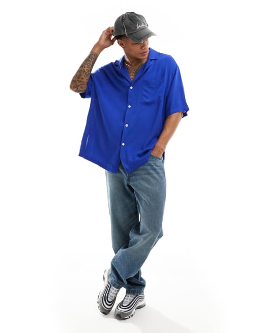 ASOS DESIGN short sleeve oversized bowling shirt in cobalt blue