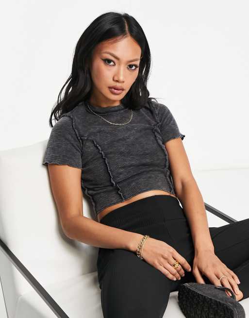 ASOS DESIGN short sleeve slubby seam baby tee in black