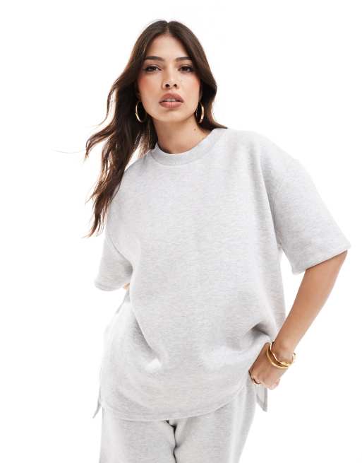 ASOS DESIGN short sleeve sweatshirt in gray heather - part of a set