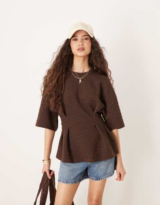 ASOS DESIGN short sleeve top in chocolate floral jacquard