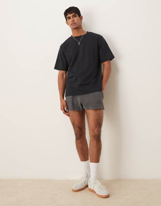 ASOS DESIGN shorter length terrycloth shorts in charcoal