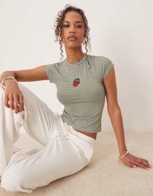 ASOS DESIGN shrunken baby tee with beaded strawberry graphic in green stripes