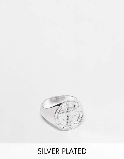 ASOS DESIGN signet ring with vitruvian design in real silver plate