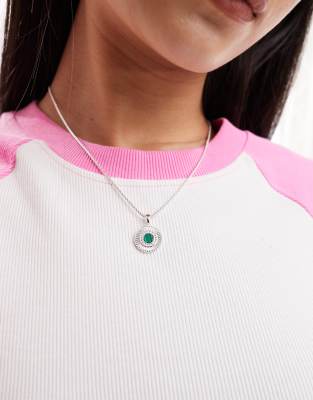 ASOS DESIGN silver plated adjustable necklace with malachite look coin pendant