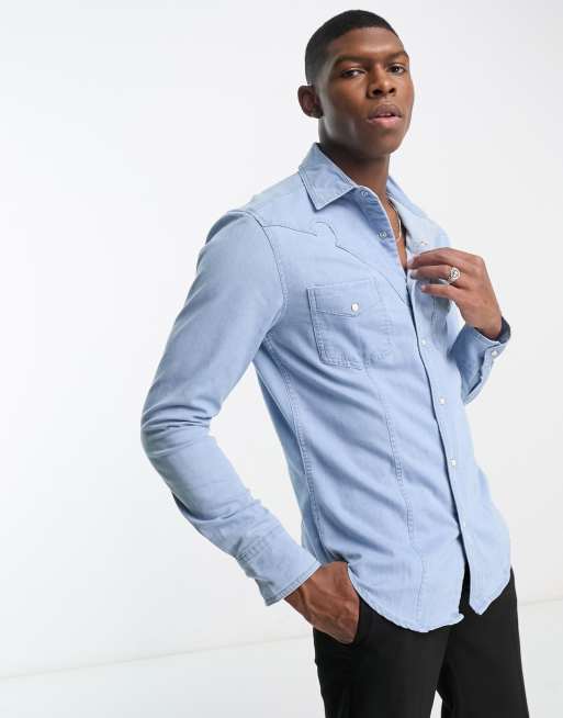 ASOS DESIGN skinny denim shirt with western detail in blue