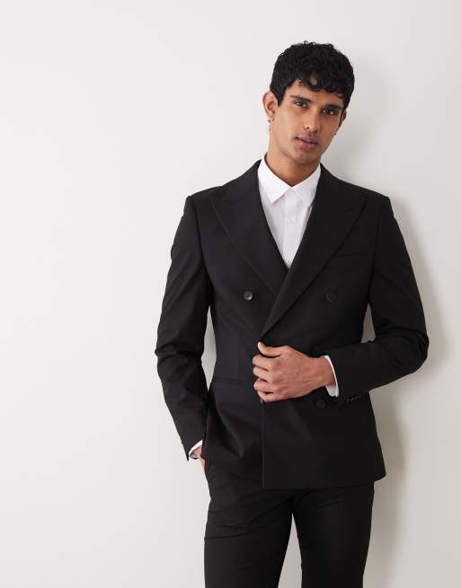 ASOS DESIGN skinny double breasted suit jacket in black twill