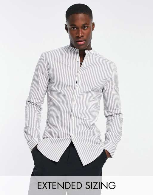 ASOS DESIGN skinny fit stripe shirt with grandad collar in gray