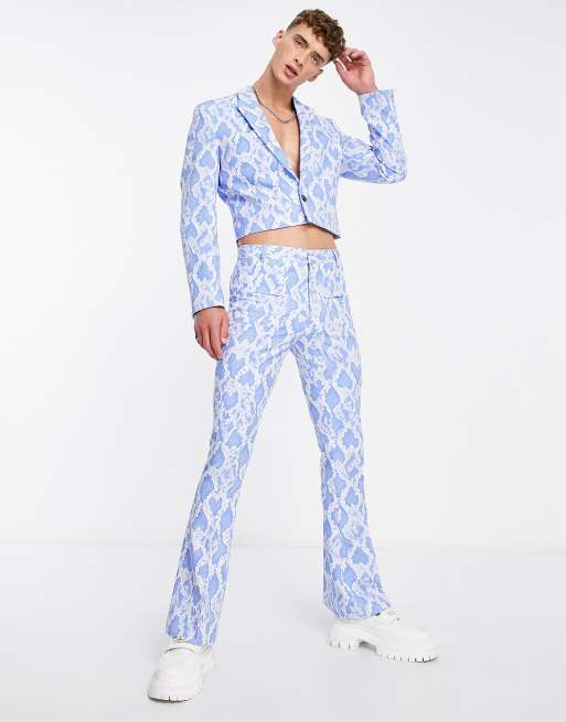 ASOS DESIGN skinny flare suit pants in snake print in blue