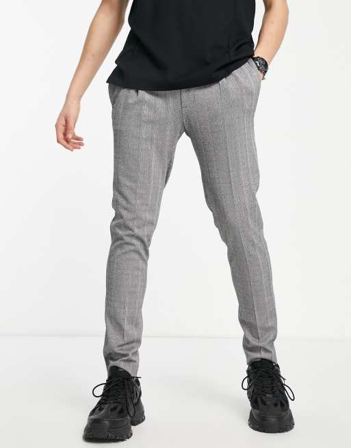 ASOS DESIGN skinny herringbone stripe smart pants in gray