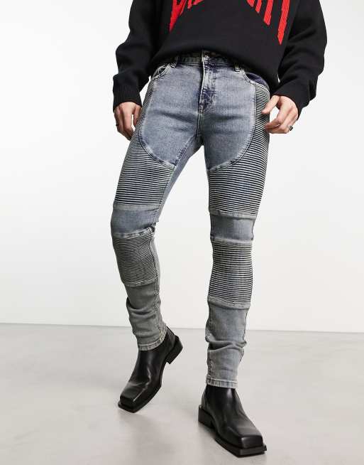 ASOS DESIGN skinny jeans with moto detail in blue