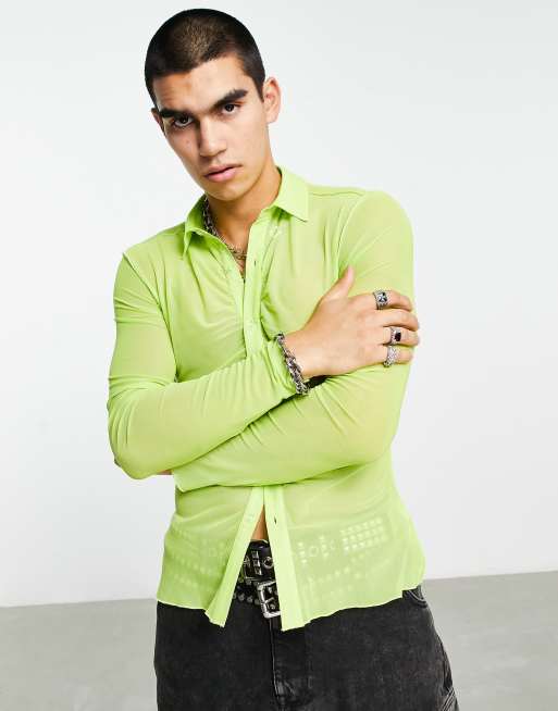 ASOS DESIGN skinny mesh shirt in neon green with ruching detail