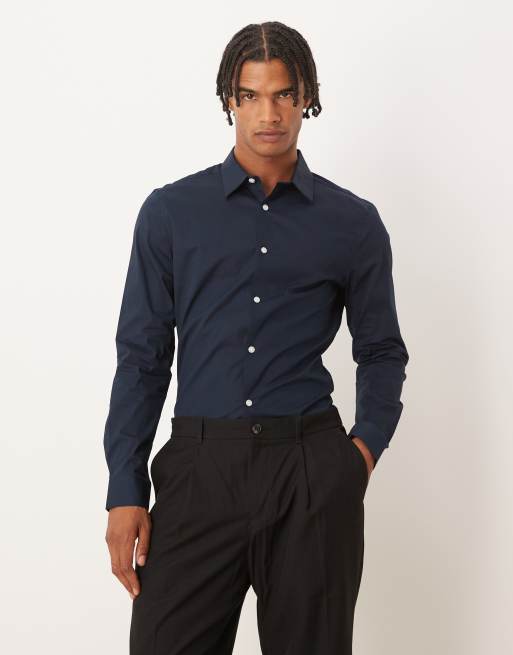 ASOS DESIGN skinny poplin shirt in navy