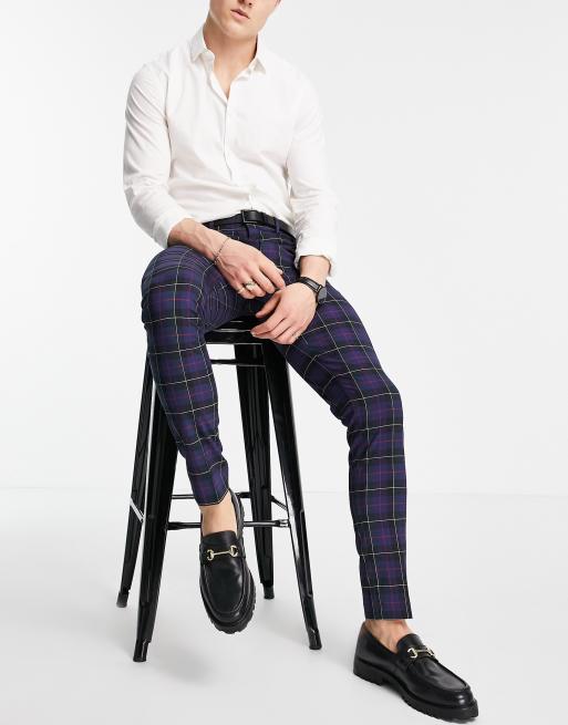 ASOS DESIGN skinny smart pants in navy tartan