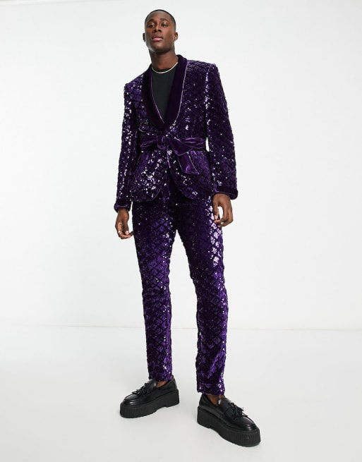 ASOS DESIGN skinny suit in sequin diamond velvet in purple