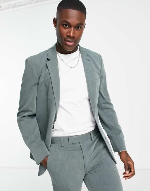 ASOS DESIGN skinny suit jacket in peached twill in dark green