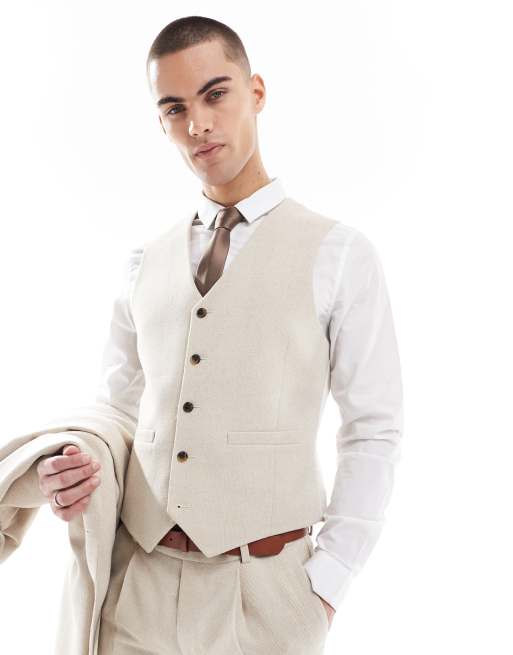 ASOS DESIGN skinny wool blend suit vest in stone herringbone