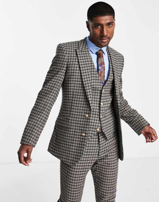 ASOS DESIGN skinny wool mix suit jacket in brown micro check
