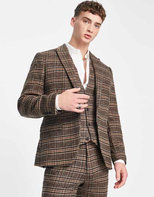 ASOS DESIGN skinny wool mix suit jacket in brown plaid