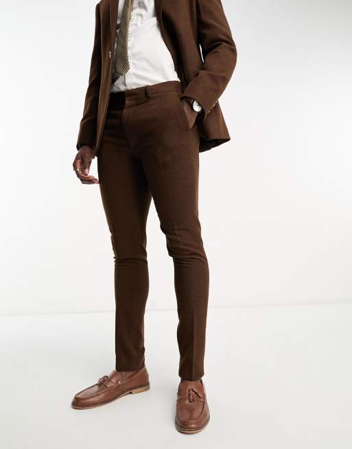 ASOS DESIGN skinny wool mix suit pants in herringbone in brown