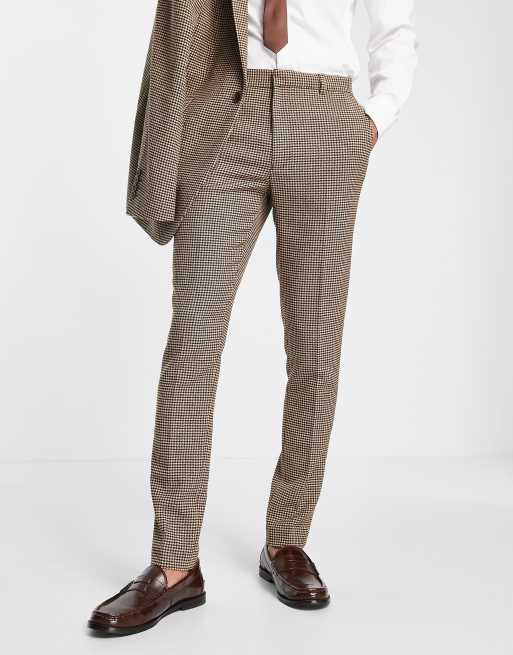 ASOS DESIGN skinny wool mix suit pants in tonal brown dogtooth