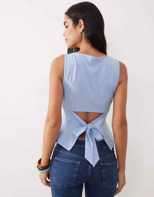 ASOS DESIGN slash neck tie back tank top in baby blue
