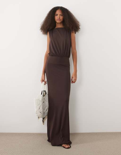 ASOS DESIGN sleeveless blouson body midaxi dress in brown