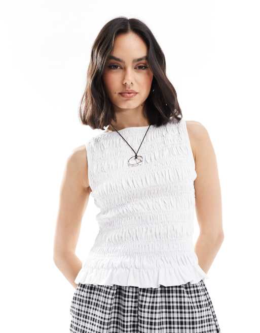 ASOS DESIGN sleeveless irregular shirred tank in white