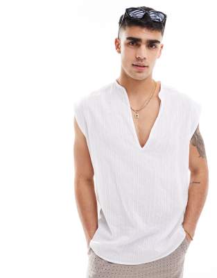 ASOS DESIGN sleeveless jacquard cotton overhead shirt in white